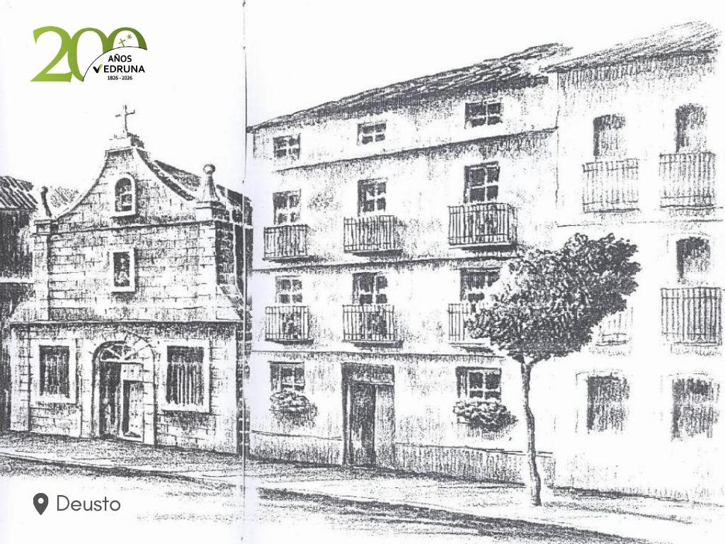 En el año 1878, el 26 de febrero, 5 hermanas llegan a Deusto, que en aquel momento era un pueblo cercano a Bilbao con 2323 habitantes. Mariano de Ibarguengoitia, párroco de la catedral de Santiago, pide a la madre general Paula del Puig, sucesora de Joaquina de Vedruna, que un grupo de hermanas se dediquen a la enseñanza en una casa que cedía Vicenta Garocica con las rentas que dejaba para ello. Esas hermanas se dedicarán a la enseñanza primaria y gratuita de niñas pobres durante la semana y a una escuela dominical para mayores de 14 años. En 1940 se cierra esta misión para incrementar las dos fundaciones del centro de Bilbao.