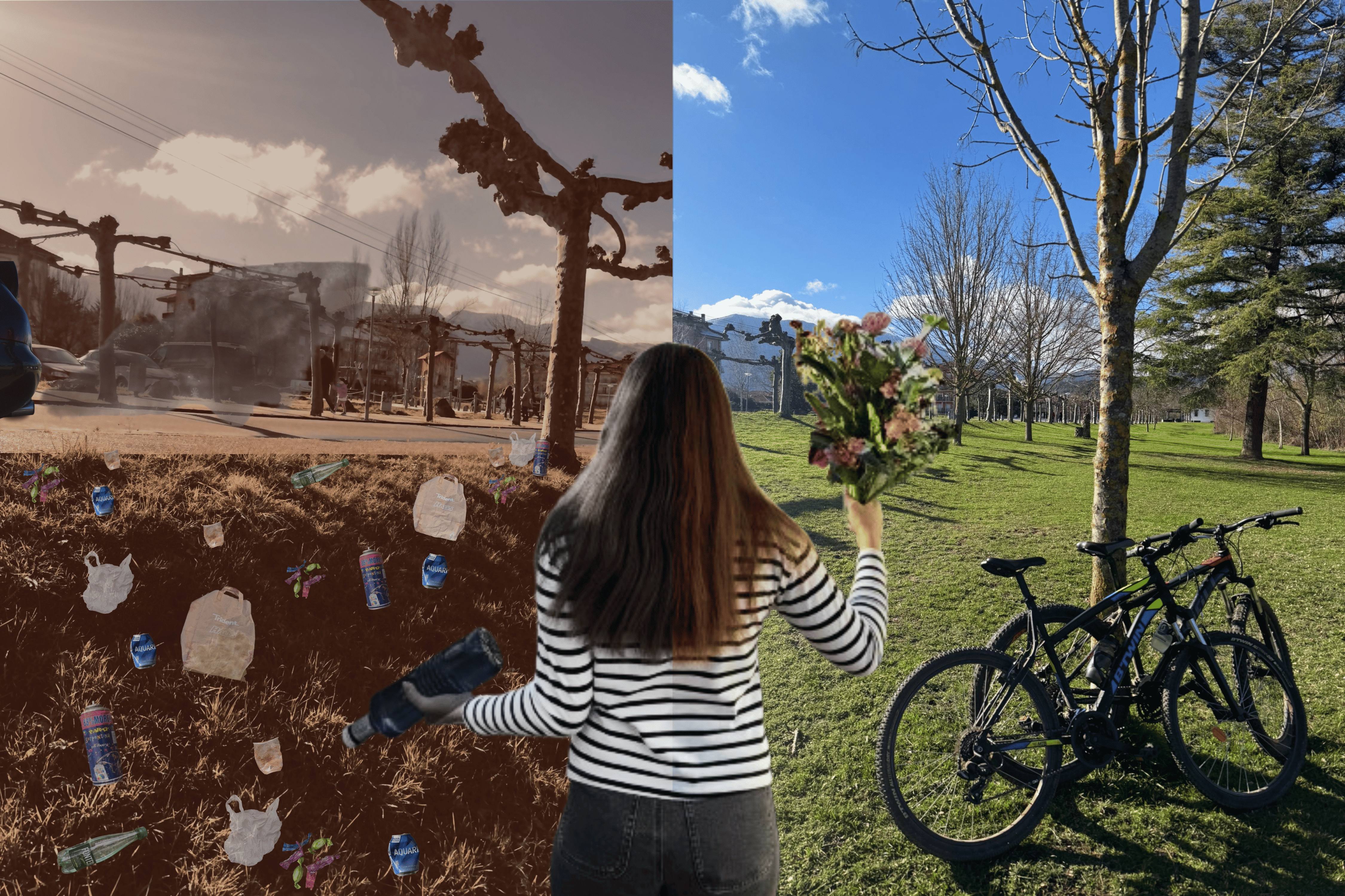 La fotografía representa la dualidad del mundo y nuestra capacidad de elección como individuos y como sociedad. A través del contraste entre un entorno contaminado y otro lleno de vida, la imagen muestra dos posibles caminos hacia nuestro futuro. La chica que está en medio simboliza el futuro que tenemos en nuestras manos y que nuestras acciones, por pequeñas que parezcan, pueden generar un gran cambio entre destrucción y esperanza.